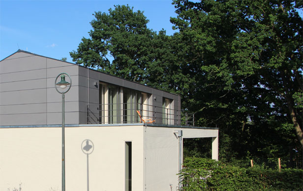 Fassadenausschnitt Süd / Ansicht Ost mit Terrasse im UG