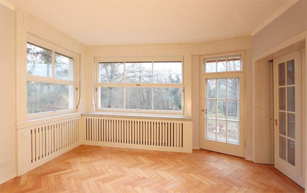 Blumenfenster mit Heizkörperverkleidung im Wohnzimmer
