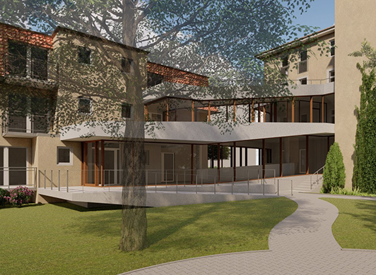 Neubau eines Verbindungsbaus zwischen zwei bestehenden Gebäuden in Dresden Strehlen, in Planung