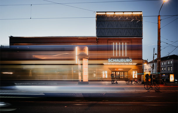 Die „Dresdner Schauburg“ – 1927 mit einem Saal für über 1000 Gäste eröffnet – erlebte mehrere Umbauphasen. Während sie in den 90-er Jahren innerhalb der bestehenden Kubatur in drei Säle geteilt wurde, ging esnun neben einer umfassenden Grundsanierung mit besonderem Augenmerk auf Brandschutz und Haustechnik um eine Erweiterung um zwei zusätzliche Säle. In enger Abstimmung mit Denkmalpflege und Stadtplanung wurden eine Aufstockung des Bestandsgebäudes zur Straßenkreuzung hin und die Erweiterung des Kellergeschosses unter dem Hof mit je einem Saal realisiert. Mit dem selbstbewussten „Aufsatz“ und dem neu organisierten Foyer präsentiert sich die Schauburg mit einer signifikanten und einladenden Geste.