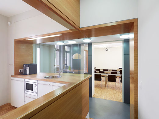 Teeküche mit Blick in den Schulungsraum