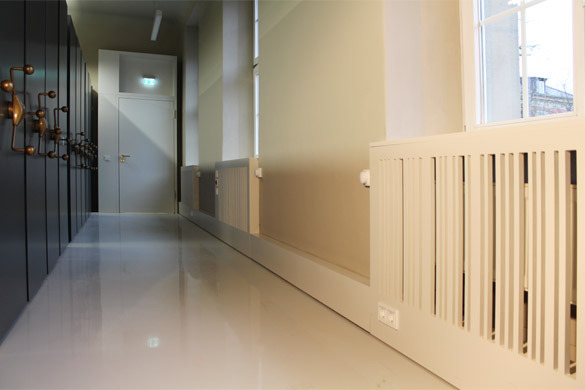 Rollregalanlage und Heizkörperverkleidung im Archivbereich